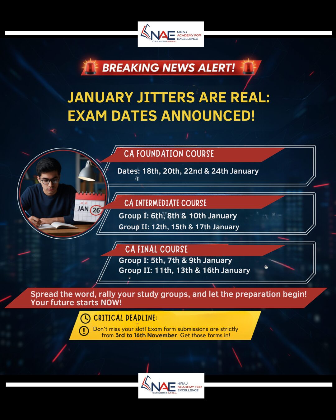ICAI EXAM DATES JANUARY 2026