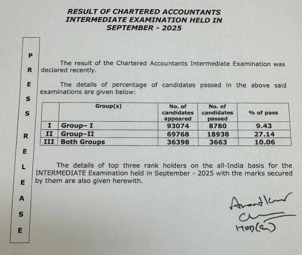 ICAI - RESULT INTER'25