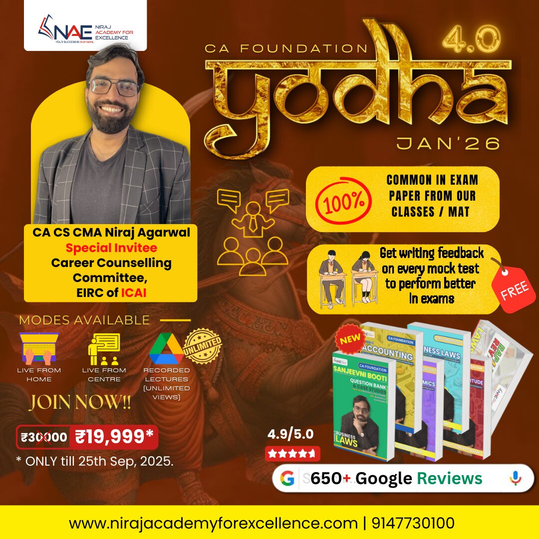 This course is designed to prepare students for the Chartered Accountancy (CA) Foundation examination conducted by the Institute of Chartered Accountants of India (ICAI). These classes aim to provide comprehensive coverage of the foundational concepts and principles essential for a career in accounting and finance.This course covers all the four papers of CA Foundation (New Syllabus) which are:Paper 1: Accounting (100 Marks)Paper 2: Business Laws (100 Marks)Paper 3: Quantitative Aptitude (100 Marks)Paper 4: Business Economics (100 Marks)
